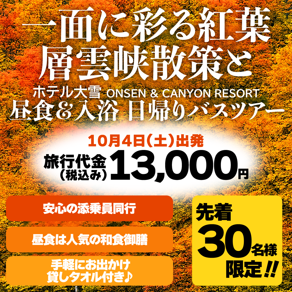 ◎募集人数:先着30名様限定(最少催行人数20名)