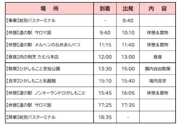 各駅では休憩のほか、お買い物タイムもたっぷり(一部休憩のみ)。